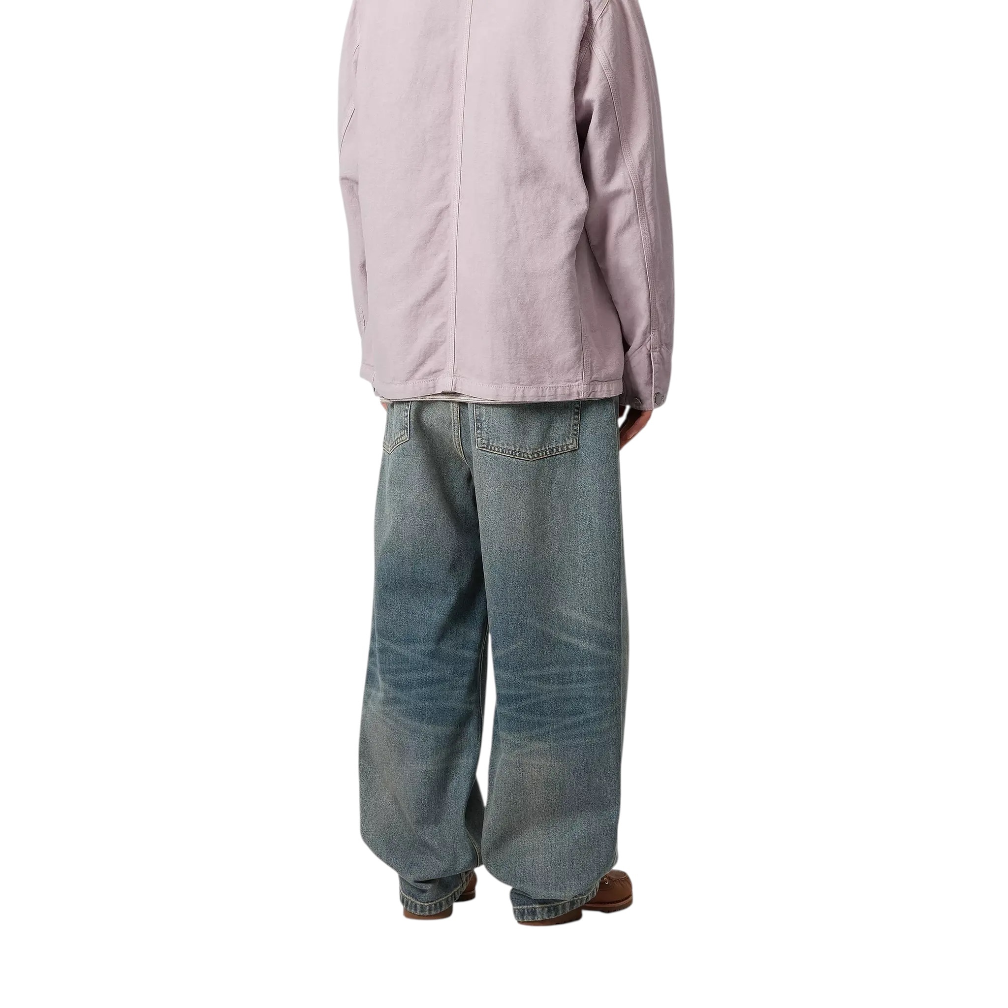 Le pantalon Brandon est réalisé en denim Smith, un coton épais, et adopte une coupe droite ample à entrejambe bas. Il est doté d’une couture incurvée à l’arrière, de plusieurs poches et d’une étiquette carrée cousue.