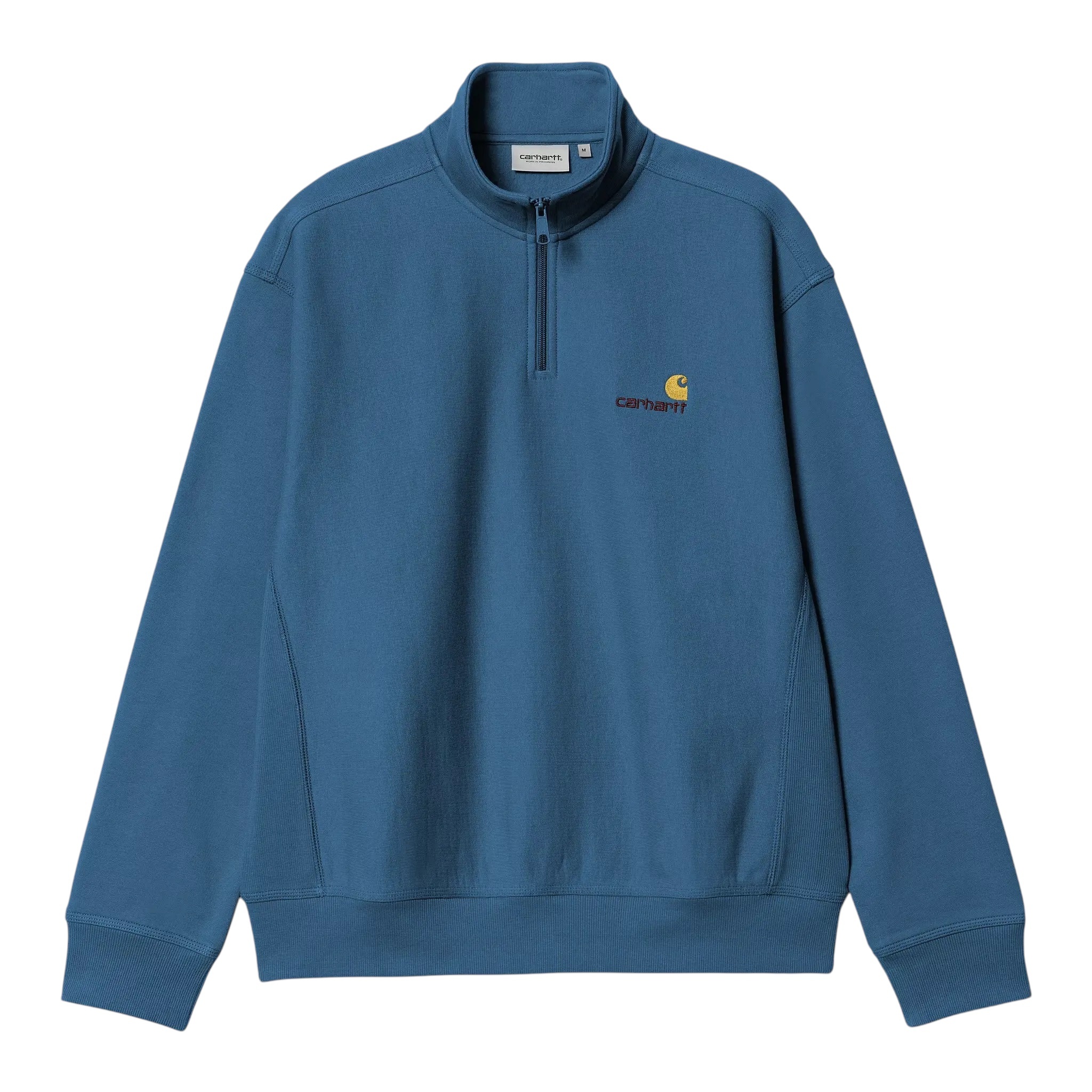 Le modèle Half Zip American Script Sweatshirt est confectionné à partir d'un mélange de coton et de polyester de 12,3 onces et brossé pour plus de douceur et de chaleur tout en préservant sa respirabilité. Le vêtement est doté d'un col montant avec fermeture zippée et un petit logo. Il présente une coupe ample et carrée.
