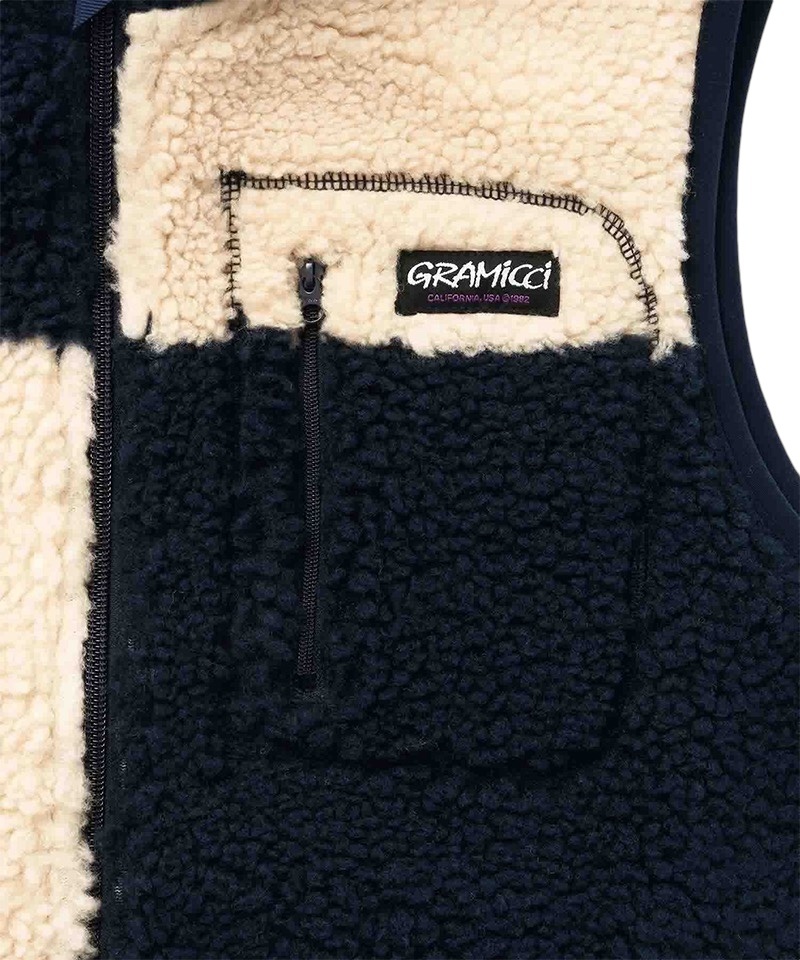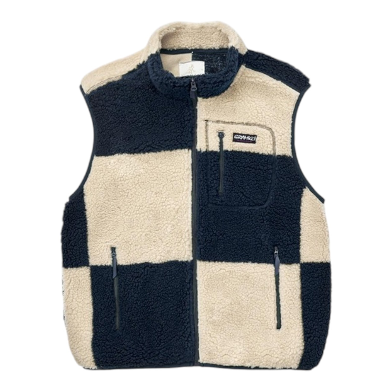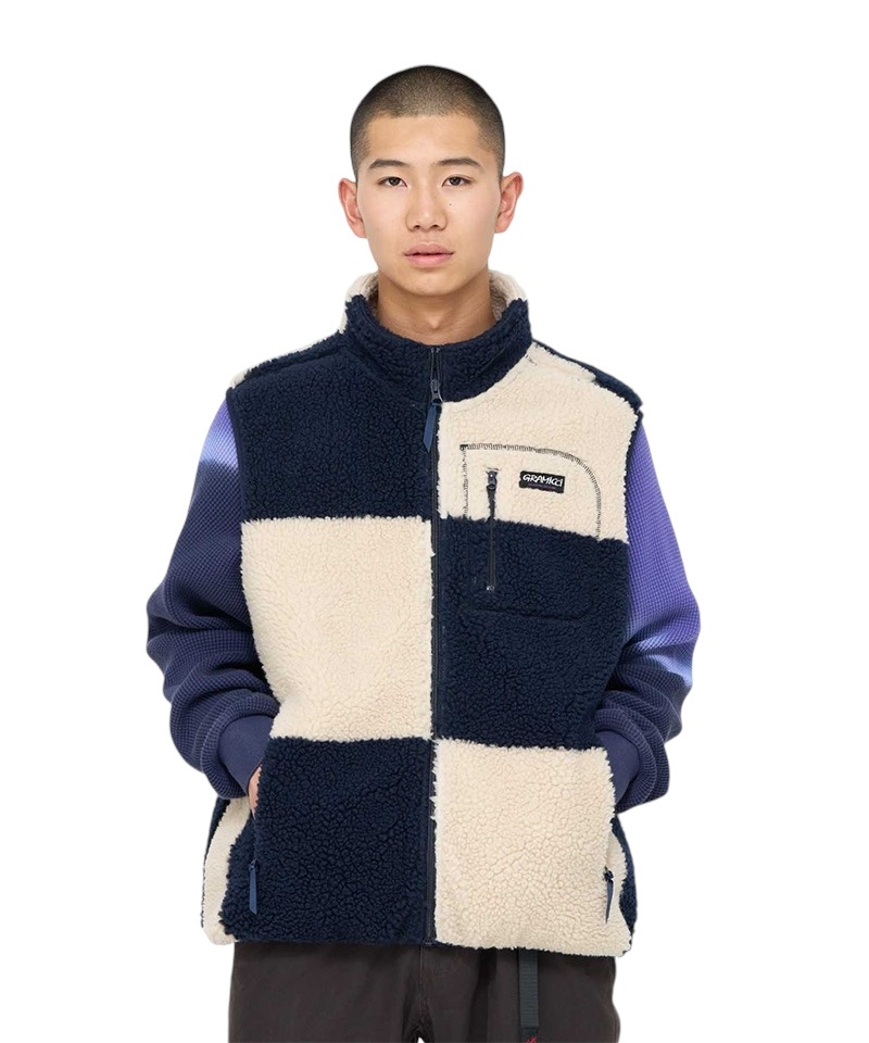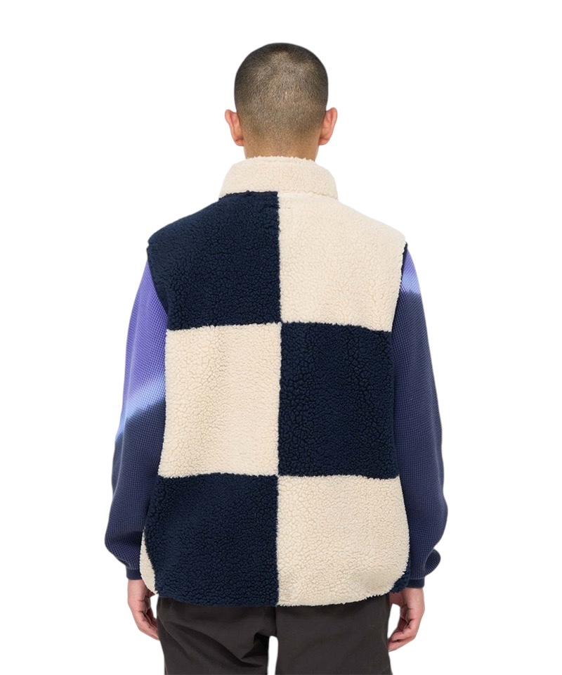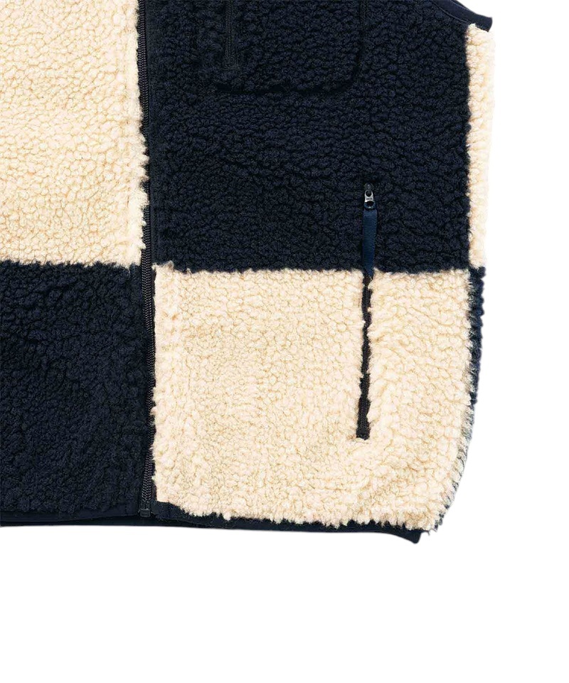 DescriptionCheckered Sherpa Vest - Natural/Navy Check