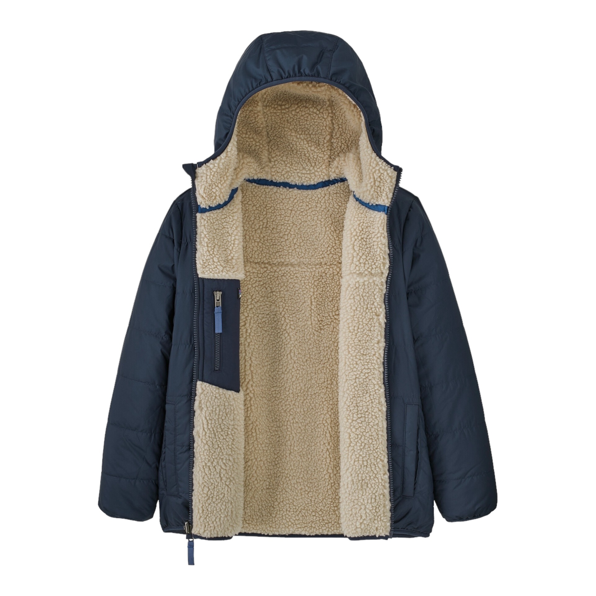 Intérieur de la veste : polaire chaude et douillette en polyester recyclé de 6 mm d’épaisseur, avec la même poche poitrine zippée que notre Retro-X