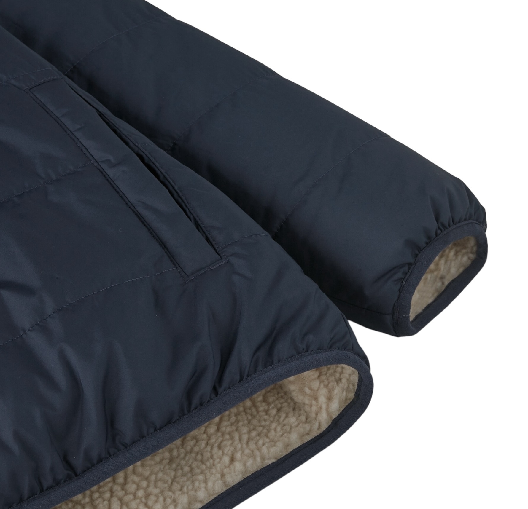 Modèle réversible doté d’une matière extérieure résistante à l’eau en taffetas 100% polyester recyclé ; isolation Thermogreen™ en polyester recyclé, maintenue par matelassage