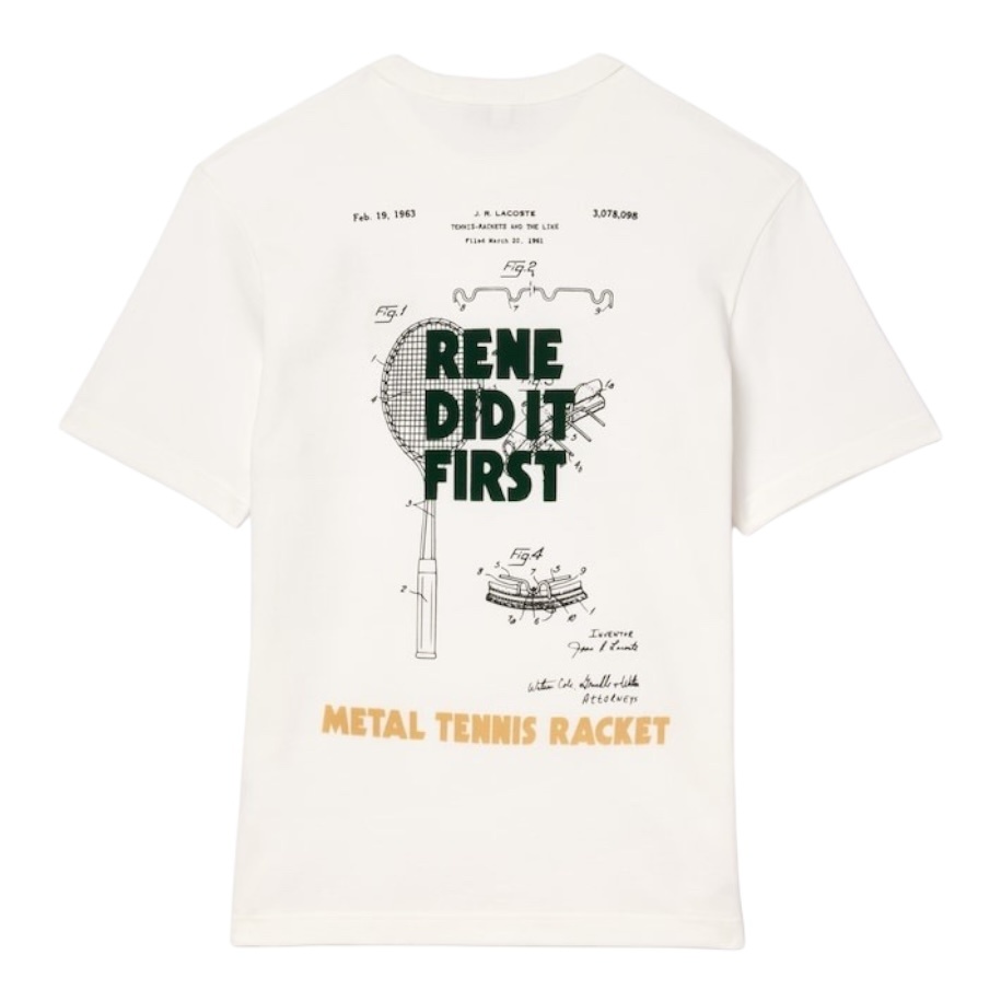 Optez pour le look iconique de ce t-shirt en coton qui affiche les différents brevets de René Lacoste, créateur de la marque. Un hommage à l’inventivité et à l’innovation, l’esprit sport chic en plus !