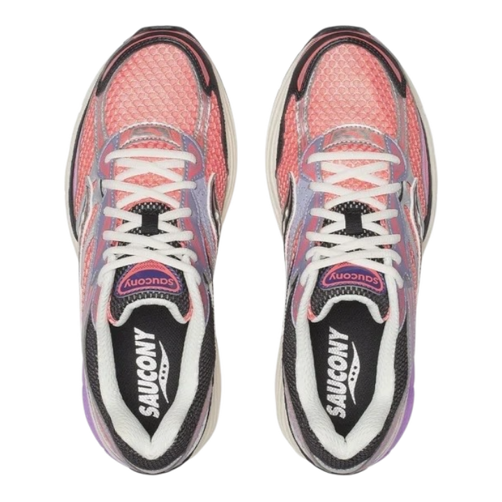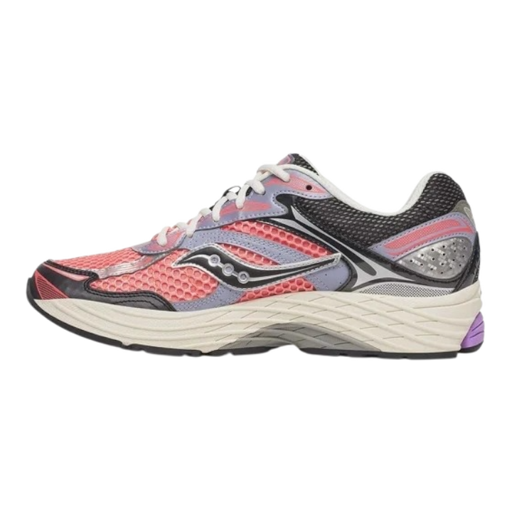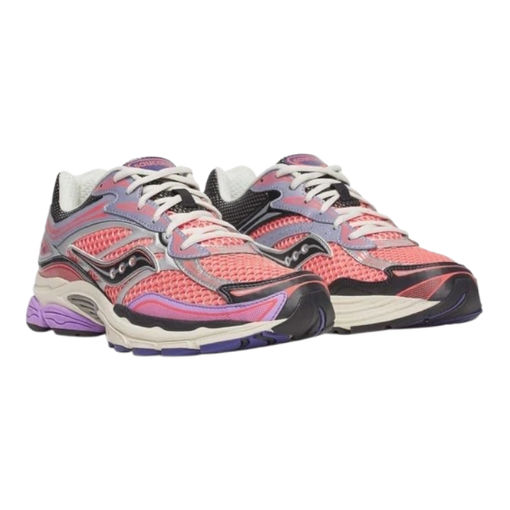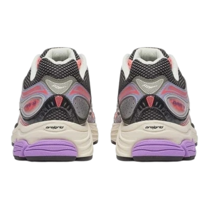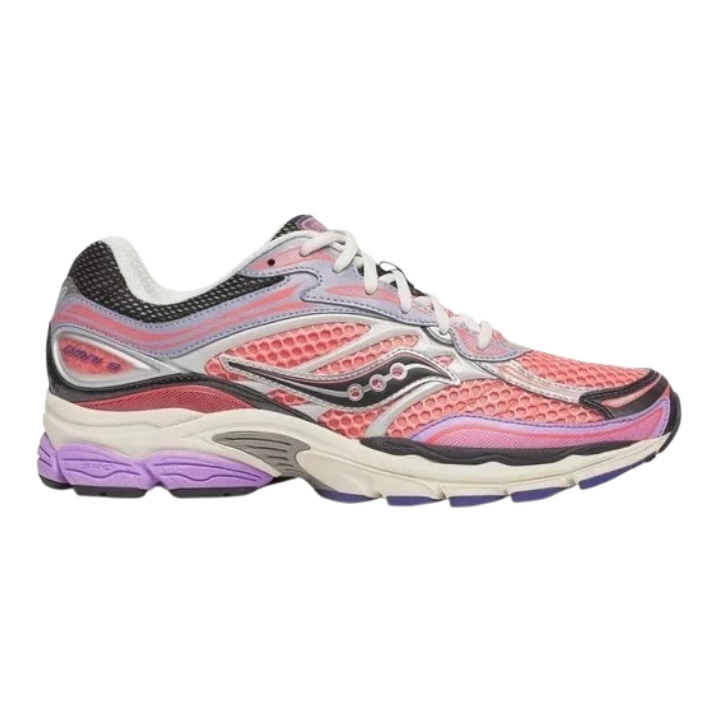La Saucony ProGrid Omni 9 Rose/Violet allie un style rétro à des performances modernes, avec une maille respirante, des renforts stabilisateurs et la technologie d'amorti Grid pour un confort durable.