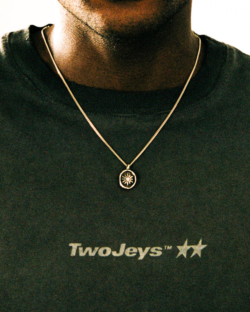 Le collier jour et nuit est composé d'une chaîne en argent 925 qui laisse pendre un pendentif à deux faces, représentant la lune et le soleil.